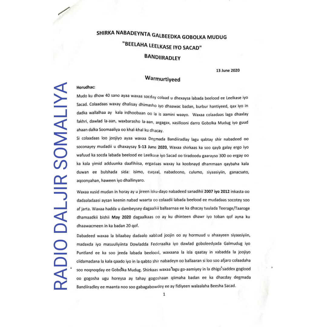 degmadda BANDIIRADLEY waxaa saaka ku soo xirmay Shirka Beelaha Sacad iyo Leelkase oo laga soo saray qoddobo,iyado shirkan maalmihi u dambeyeey uu ahaa mid si dar darleh ku socda.