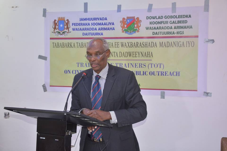 Ujeedada tabarkan ayaa ahayd in dadka loo tababaro waxbarashada madaniga ah iyo wacyi galinta dadweynaha ay sii gaarsiiyaan dadka ku nool deeganada koonfur galbeed Soomaaliya iyaga oo kaashanaya waaaradda arrimaha dastuurka Koonfur Galbeed Soomaaliya.
