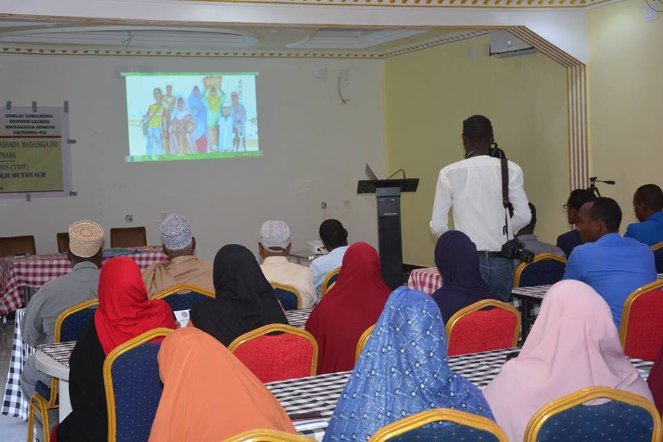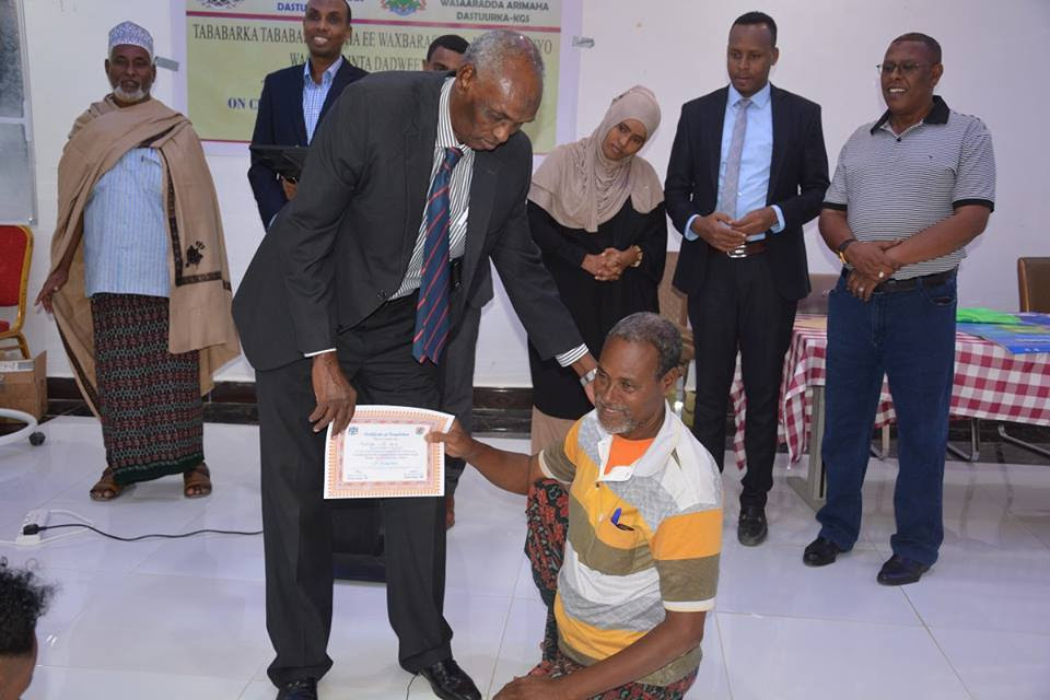 Gabagabadii, dadkii ka soo qaybgalay tababarka ayaa la gudoonsiiyay shahaadooyin muujinaya in ay qaaateen tababarka waxbarashada madaniga ah iyo wacyigalinta dadwaynaha, sidoo kale waxaa loo qaybiyay buugaagta dastuurka iyo buugaag ay ku qoranyihiin su’aalo iyo jawaabo ku saabsan dastuurka.