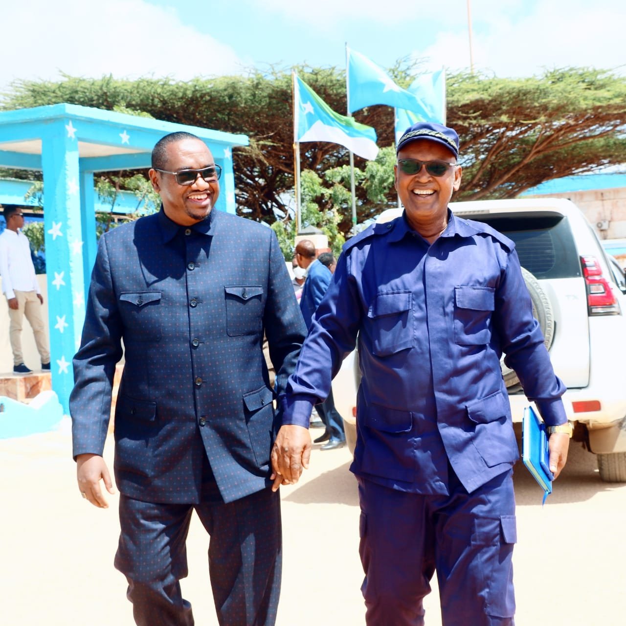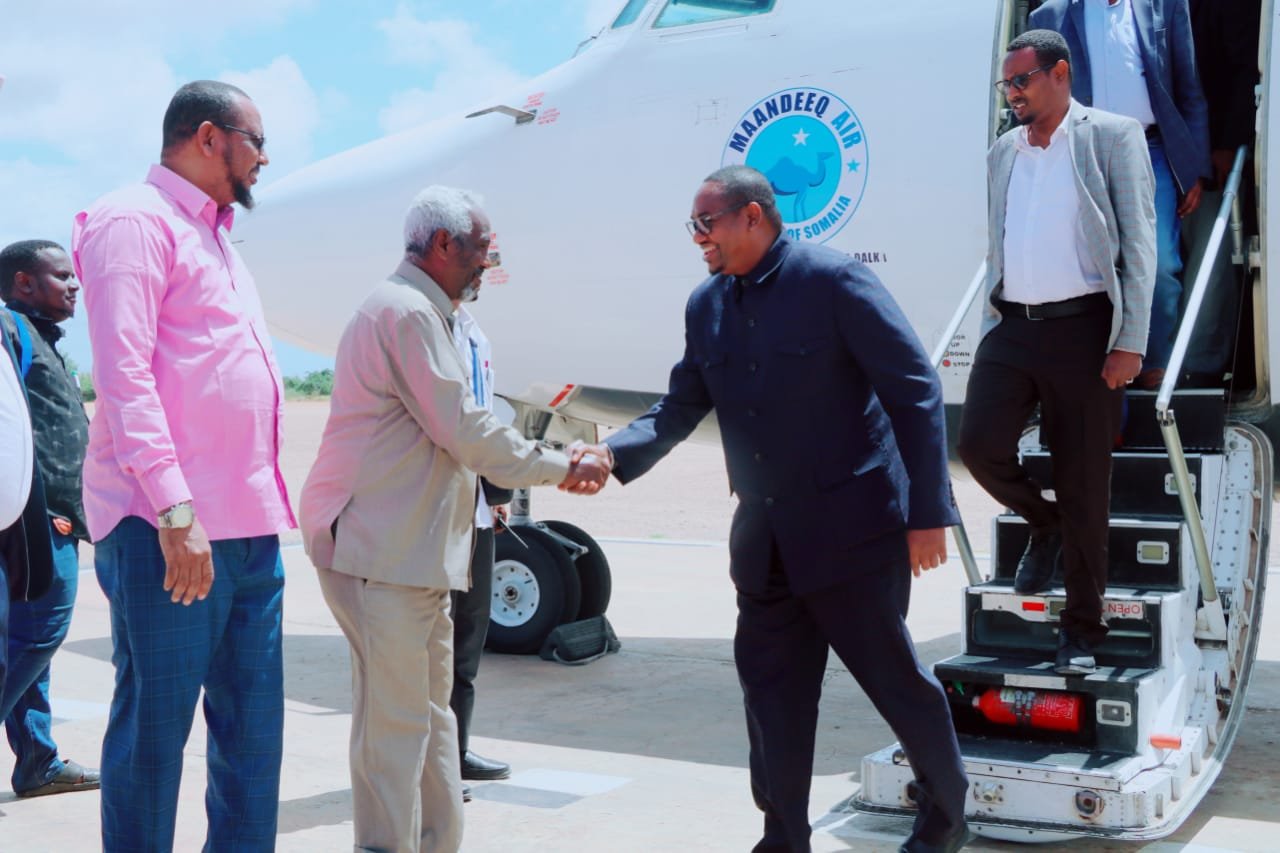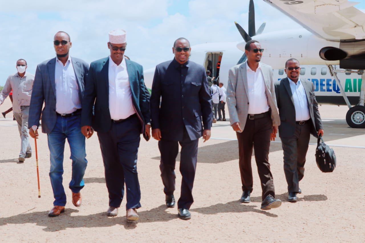 Waftigan oo uu hogaaminayo Wasiirka Amniga Puntland, Cabdisamad Gallan, ayaaa waxaa garoonka diyaaradaha ku soo dhaweeyey wasiirka Amniga Jubbaland Yusuf Maxamed Cismaan Dhuumaal.