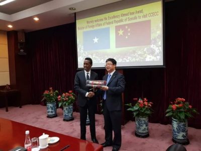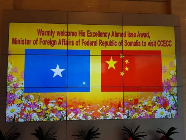 Wasiirka Arrimaha Dibadda iyo Iskaashiga Caalamiga ee Xukuumadda Federaalka Soomaaliya Mudane Axmed Ciise Cawad ayaa shalay booqday Hey’adda Iskaashatada dhismaha ee Shiinaha, waxaana ku soo dhoweeyay Guddoomiye kuxigeenka hey’addaasi Mudane Lu Jing.